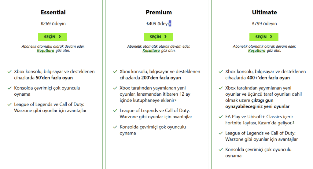 - Standart plan ise Game Pass Premium olarak değiştirildi.